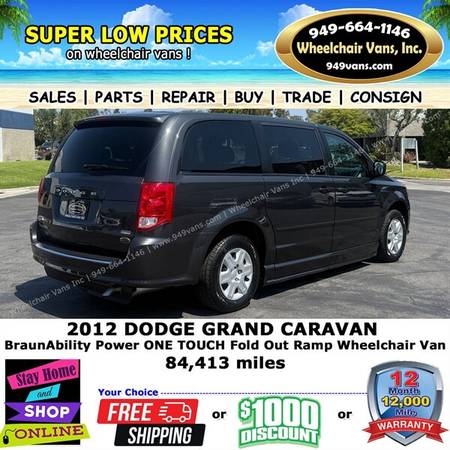 2012 Dodge Grand Caravan BraunAbility Power ONE TOUCH Fold Out Ramp Side Loading Wheelchair Van