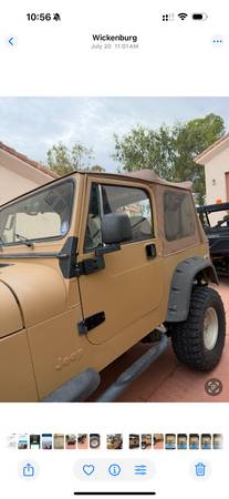 I have a 1989 Jeep, in very good condition, with 4 wheel drive, has air conditioning that’s working. Standard transmission, very good tires. Has new steering box. Everything works like it should. The passenger side widow can be hard to roll up. Needs a good cleaning. Have a clear title.