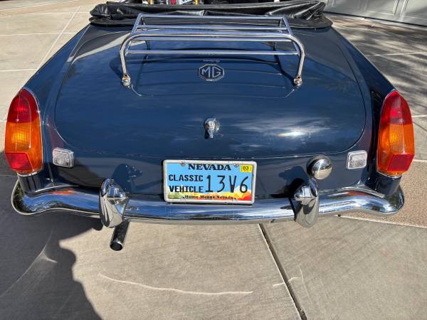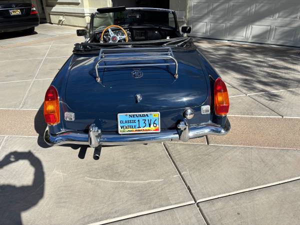 Pure British Classic, 1972 MGB, Tahoe Blue exterior, Black Leather interior with White Piping, WireWheels, Wooden Steering Wheel,