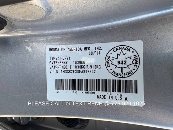 VIN:1HGCR2F38FA802302