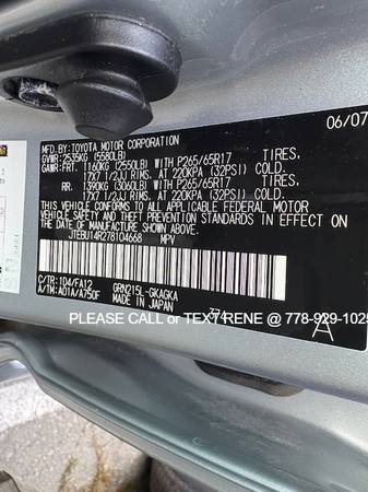 Don’t miss out on the opportunity to own a remarkable vehicle like the 2007 Toyota 4Runner SR5 Sport Edition 4WD. Contact RENE today and explore your financing options through AllCreditAuto.Loan. Your adventure awaits!
