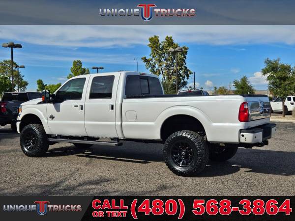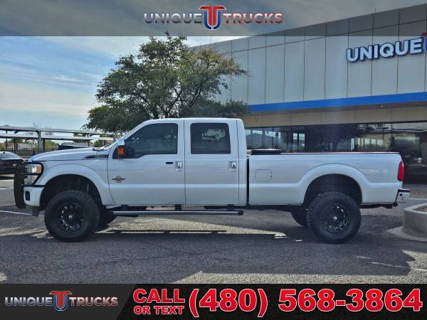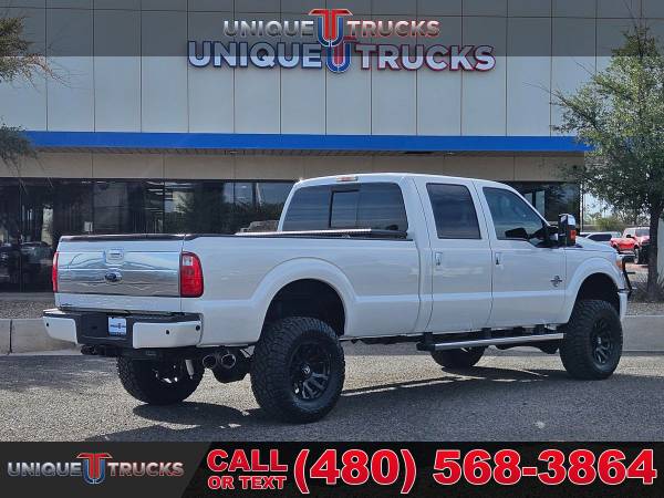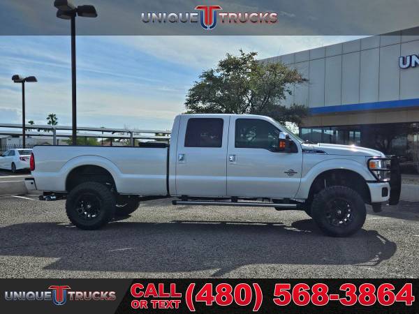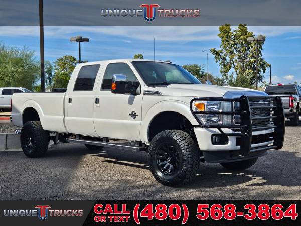 This lifted 2015 Ford F-350 SuperDuty Platinum Edition Crew Cab Long Bed is one of the cleanest trucks you’ll find. The White Platinum Metallic Tri-Coat exterior looks sharp, and the color-key matching accents give it a smooth look from front to back. Inside, the Platinum edition pecan leather interior makes it feel both bold and comfortable.This truck is powered by the 6.7 liter PowerStroke V8 turbocharged diesel engine, paired with a smooth 6-speed automatic transmission. It has the kind of strength and dependability you want in a heavy-duty truck, whether you’re hauling, towing, or just driving every day.The lifted stance, brand new all-terrain tires, and black Fuel wheels give this F-350 a look that turns heads everywhere it goes. This setup makes it one of those lifted trucks that stands out on the road while still being ready for any kind of work.Being a long bed edition, this truck is ready to go when you need the extra space. The long bed makes hauling gear, tools, or weekend toys simple and gives this truck even more value for both work and play.It also comes ready with a spray-in bedliner to protect the bed and handle whatever you load into it. On the front end, the custom bumper guard adds extra strength and a bold style, while the chrome running boards make getting in and out easy.Inside, this Platinum edition comes with an 8-inch full color touchscreen with navigation. You’ll have access to everything from maps to your media, all in one simple system. Dual zone automatic climate control also keeps both the driver and passengers comfortable in any weather.This truck is built to tow and haul with confidence. The diesel power and long bed design mean it’s ready for tough jobs, trailers, or heavy loads, making it one of the most capable trucks you can find.It’s also been fully serviced and is ready for its next owner to enjoy. Trucks this clean, with lifted upgrades and Platinum trim, don’t come around often, especially with all the extras this one has.At Unique Trucks, we make it easy with our no obligation delivery service. This truck can be brought right to your doorstep for a test drive. You can make your best deal over the phone, and if you don’t like it, you don’t buy it.We love trade-ins and make upgrading simple. We encourage you to come in and check out our wide selection of trucks and lifted trucks, where you’ll find clean, sharp, and ready-to-go trucks waiting for you. _____________________________ 2015* 2016* FORD* F350* F 350* F-350* SUPERDUTY* PLATINUM* CREW* CREW CAB* POWERSTROKE* DIESEL TRUCKS* LIFTED TRUCKS* FORD TRUCKS* DIESEL* PLATINUM EDITION* CREW* LARIAT* CHEAP DIESELS* FORD TRUCKS* DIESEL TRUCKS* LOW MILES* LOW MILEAGE* RELIABLE* ONLY*