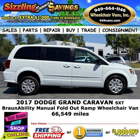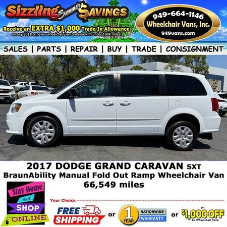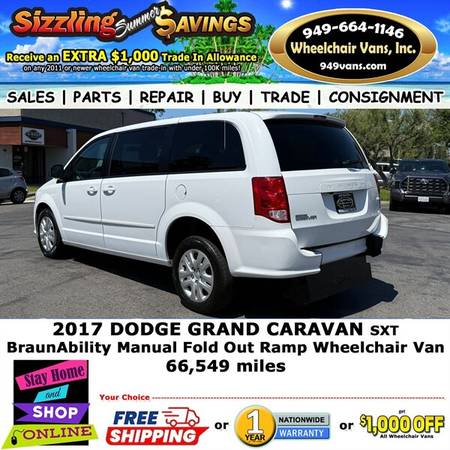 Discover the versatility and accessibility of the 2017 Dodge Grand Caravan BraunAbility Manual Fold Out Ramp Rear Loading Wheelchair Van.