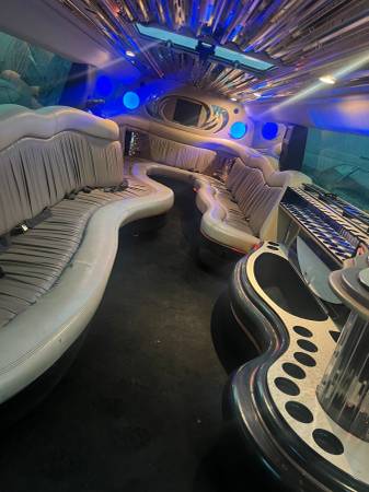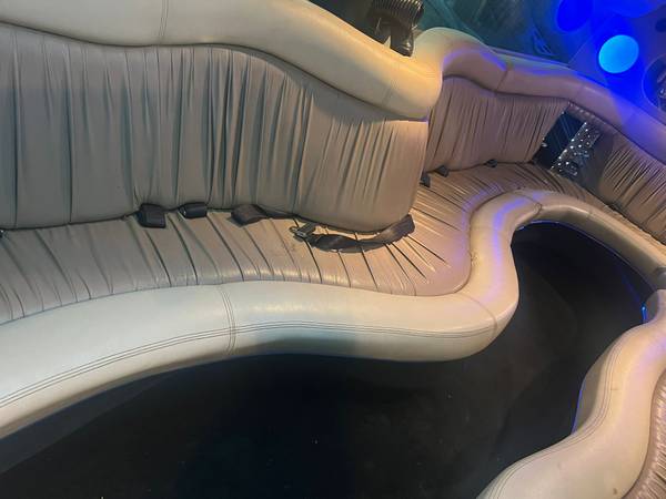 160k miles, 200″ stretch, white exterior, premium sound and lighting package for the back.
