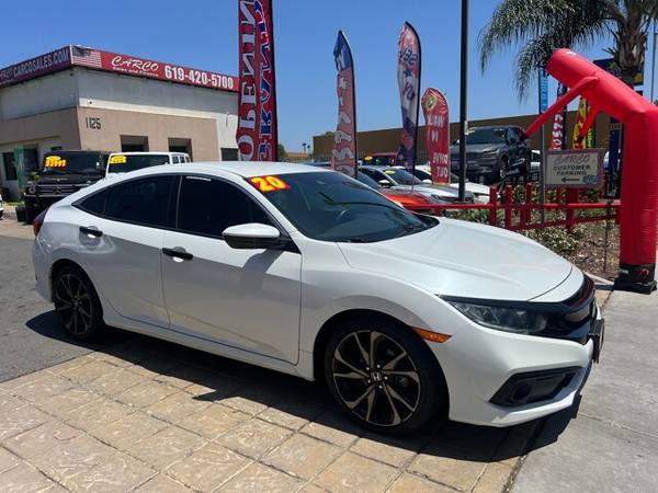 Looking for a car that delivers a dynamic driving experience, sleek design, and unbeatable reliability? Look no further than the 2020 Honda Civic Sport with only 41k miles. With a perfect balance of power, comfort, and cutting-edge features, this compact car is designed to enhance every journey, whether you're commuting to work, hitting the open road, or running errands around town.Bold and Sporty DesignThe 2020 Honda Civic Sport stands out on the road with its sleek, athletic profile. Featuring a modern design with a bold front grille, aggressive headlights, and aerodynamic lines, this car exudes confidence from every angle. The sporty 18-inch alloy wheels and chrome exhaust finisher add a touch of sophistication while highlighting the Civic Sport’s performance-driven DNA.Effortless PerformanceUnder the hood, the 2020 Civic Sport is powered by a responsive 2.0-liter, 4-cylinder engine, delivering 158 horsepower and 138 lb-ft of torque. This engine strikes the perfect balance between performance and fuel efficiency, giving you the power you need to enjoy an engaging driving experience while keeping your fuel costs in check.The continuously variable transmission (CVT) ensures smooth, precise shifts, while the Civic Sport's front-wheel-drive (FWD) layout provides excellent handling and stability. Whether you're navigating tight city streets or cruising on the highway, the Civic Sport delivers a refined, responsive drive.Comfortable and Feature-Packed InteriorStep inside the 2020 Civic Sport, and you'll find a modern and spacious cabin designed for comfort and convenience. The sporty, yet ergonomic front seats are upholstered in durable cloth with a distinctive pattern, offering both support and style. The rear seat provides plenty of legroom, ensuring that passengers enjoy a comfortable ride.With the 7-inch Display Audio touchscreen, you can easily connect your smartphone via Apple CarPlay® or Android Auto™, enabling seamless access to your favorite apps, navigation, music, and more. The Bluetooth® HandsFreeLink® and USB ports further enhance your tech experience, ensuring you stay connected on the go.The Honda Sensing® suite of safety features comes standard, offering added peace of mind with technologies like Forward Collision Warning, Lane Departure Warning, Adaptive Cruise Control, and Lane Keeping Assist. These features work together to help prevent accidents and keep you and your passengers safe.Advanced TechnologyStay ahead of the curve with a range of tech and convenience features that make every drive easier and more enjoyable. The 2020 Civic Sport is equipped with:-Remote engine start for easy temperature control on hot or cold days.-Smart Entry with Walk Away Auto Lock for added security and convenience.-Push-button start for a smooth and easy ignition process.-Power-adjustable driver’s seat to ensure the perfect driving position every time.-Fuel EfficiencyOne of the Civic Sport’s standout features is its impressive fuel efficiency. With an estimated 30 MPG in the city and 38 MPG on the highway, this car helps you save money at the pump while reducing your carbon footprint. Whether you're running errands or embarking on a road trip, the Civic Sport ensures you get the most out of every gallon.Reliable and AffordableAs with all Honda vehicles, the 2020 Civic Sport is built with Honda’s legendary reliability and longevity in mind. Backed by a 3-year/36,000-mile limited warranty and a 5-year/60,000-mile powertrain warranty, this car offers long-lasting peace of mind.In addition, the 2020 Honda Civic Sport offers exceptional value for the price. Its combination of advanced features, solid performance, and sleek design make it a smart investment that will continue to impress for years to come.Why Choose the 2020 Honda Civic Sport?-Stylish design that turns heads wherever you go.-Sporty performance with a 158-horsepower engine and efficient CVT.-Advanced technology to keep you connected and safe.-Fuel-efficient with up to 38 MPG on the highway.-Reliability and longevity from Honda's trusted engineering.If you're looking for a car that combines performance, practicality, and a touch of luxury, the 2020 Honda Civic Sport is the perfect choice for you. Don’t miss the opportunity to experience the car that continues to redefine what a compact car can be.Visit us today for a test drive and see why the 2020 Honda Civic Sport is the ideal car for those who demand more from their ride.Ready to Drive?Contact us to schedule your test drive and explore the available financing options. The 2020 Honda Civic Sport is ready to hit the road – and so are you!We also carry popular models like Sentra, Corolla, Jetta, Golf, Camry, Altima, Civic, Accord, Avalon, Prius, MAZDA, BMW, MUSTANG — all clean, reliable, and priced to move.We have 3 convenient locations in South County and North County San Diego. To serve you better, our vehicles may be moved between locations. If you have found a car you are interested in, please call us to confirm its current location. South Bay's premiere Sales and Finance group. Carco Sales & Finance. Now has 3 locations. 2 stores on Broadway in Chula Vista and now serving North County in Poway. We have helped thousands of families establish and re-establish their credit. Stop by one of our convenient locations or visit our website at CARCOSALES.COM. It only takes 5 minutes to submit a loan application and get approved! Are you ready to save some money on the purchase of your next CAR? We offer financing at Credit Union rates as well as financing for all other credit types.Apply today at carcosales.com Visita AutoloanSD.comOcupa un prestamo de carro para restablecer o establecer su credito? Visite empezarcredito.com.
