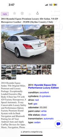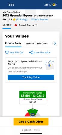 Moving or I would keep it! This 2012 Hyundai Equus is priced way under the KBB value for a quick and easy sale. It’s now available for just $3,500—less than half the price of KBB, which lists it at $8,000. Don’t miss this fantastic opportunity!