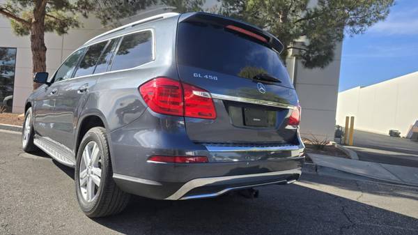 This seven-passenger luxury Mercedes-Benz GL450 is in superb condition and has only 77K miles. All Wheel Drive SUV with V6 3.0L Twin Turbocharged engine and 7-speed automatic transmission. Fully loaded with Blind Spot Assist, Navigation, Lane Keeping Assist, Lane Tracking Package, Back up camera, DVD system, Harman -Kardon sound, 10 -way power heated and active ventilated leather seats, skyview moon roof, third row seats, running boards, towing package, roof rack, and many more.