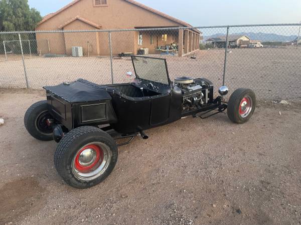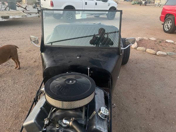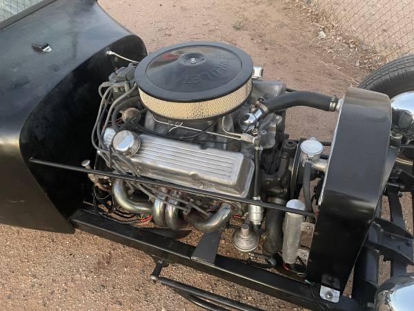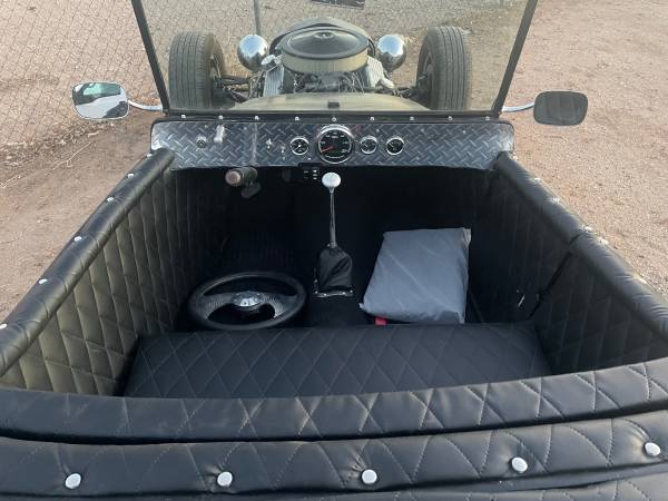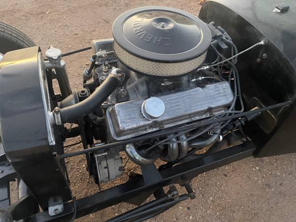 1923 T Roadster P/U channeled fiberglass body. Passenger side entry door. Custom frame done right. 1962 Chevy 327 engine, 202 double hump heads. Holley 670 carb. Ford 9″ rear end, 700 R4 automatic trans. Power does not disappoint. Runs super cool. Removable steering wheel, rain cover for cockpit. Great Rod! I’m not interested in any trades.